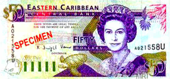 El dólar del Caribe Oriental es la moneda de curso legal en 6 países independientes (Antigua y Barbuda, Dominica, Granada, San Cristóbal y Nieves, Santa Lucía y San Vicente y las Granadinas) y dos territorios del Reino Unido (Anguila y Montserrat) que se encuentran localizados en el mar Caribe. La moneda sustituyó al dólar de las Indias Orientales en 1983 y es emitida por el Banco Central del Caribe Oriental con sede en San Cristóbal y Nieves. El papel moneda es impreso por la compañía De la Rue Currency. Actualmente las denominaciones que se encuentran en circulación son de: 5, 10, 20,50 y 100 dólares respectivamente.